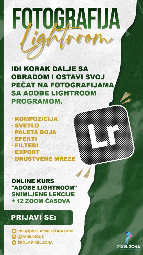 U Školi digitalnih umetnosti Pixel Zona naučiću te kroz kvalitetne i sažete kurseve kako da počneš ili unaprediš svoju umetničku stranu. Preko 15 godina iskustva u digitalnim umetnostima, dalo mi je neverovatne smernice i veštine koje sam spreman da podelim sa tobom. Naučiću te sve vezano za opremu, kompoziciju, fotografiju, post produkciju i na kraju prodaju i komunikaciju sa klijentima. Konačno ćeš naučiti kako da radiš ono što zaista voliš, a ne ono što moraš.